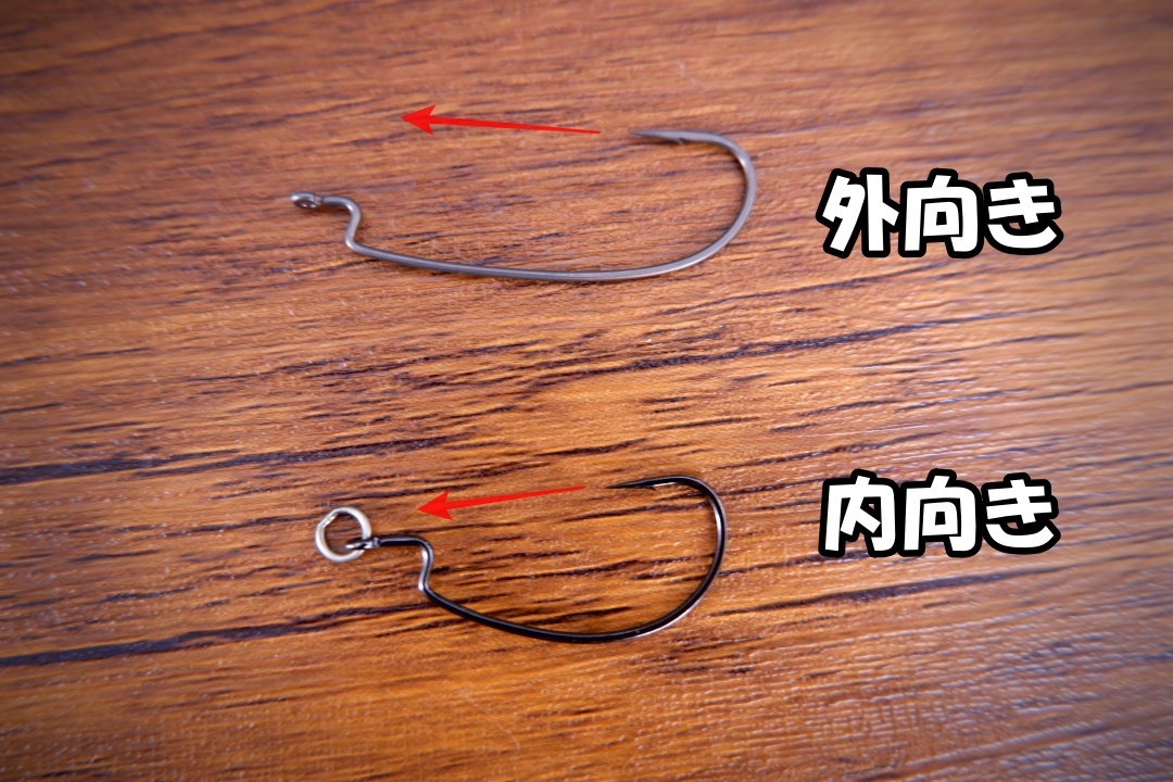 オフセットフックには針先の向きが内側に向いているものと外側に向いているものがあります。根掛かり回避性能を重視するのか、フッキング性能を重視するのかで選択していきましょう。